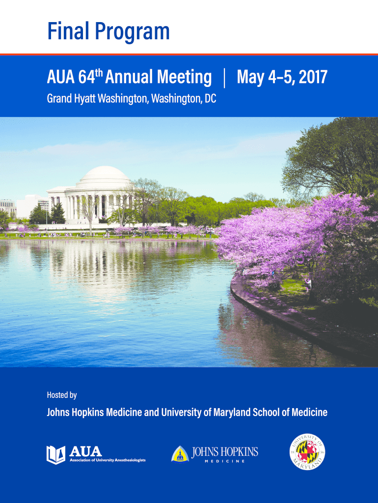 Final Program AUA 64th Annual Meeting May 45, 2017 Grand Hyatt Washington, Washington, Hosted by Johns Hopkins Medicine and University of Maryland School of Medicine AUA 64th Annual Meeting aught.