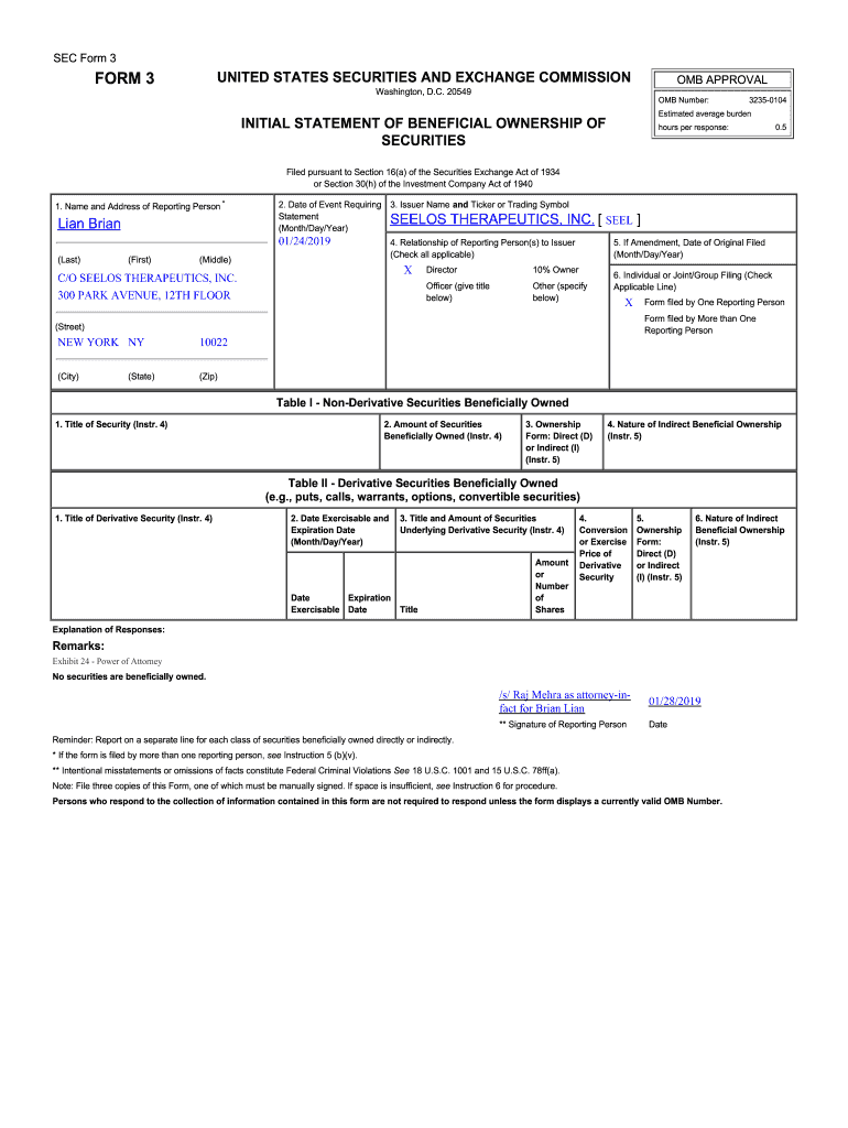 SEC Form 3UNITED STATES SECURITIES AND EXCHANGE COMMISSIONER 3OMB APPROVAL Washington, D.C. 20549OMB Number:32350104Estimated average burdenINITIAL STATEMENT OF BENEFICIAL OWNERSHIP OF