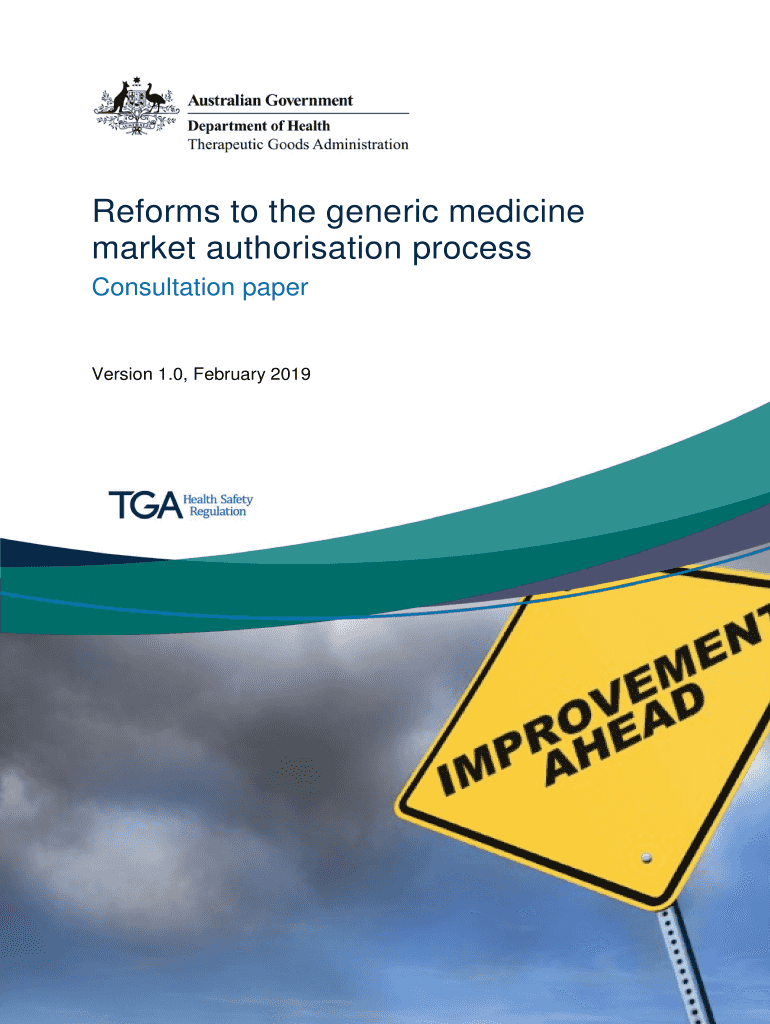 Reforms to the generic medicine market authorization process Consultation perversion 1.0, February 2019Therapeutic Goods AdministrationCopyright Commonwealth of Australia 2019 This work is copyright.