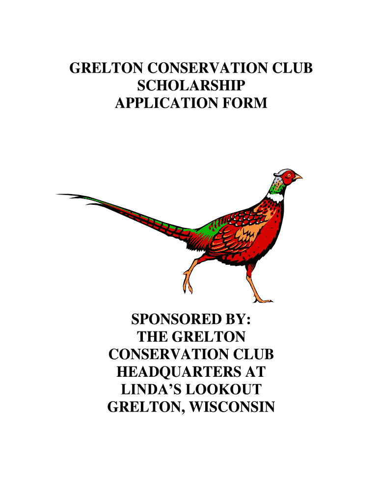 Obtain the application form for the Grelton Conservation Club scholarship.
