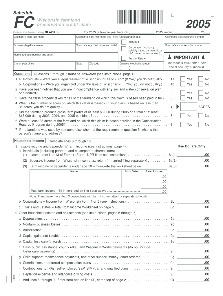 Get the free 2005 Schedule FC Wisconsin farmland preservation credit claim