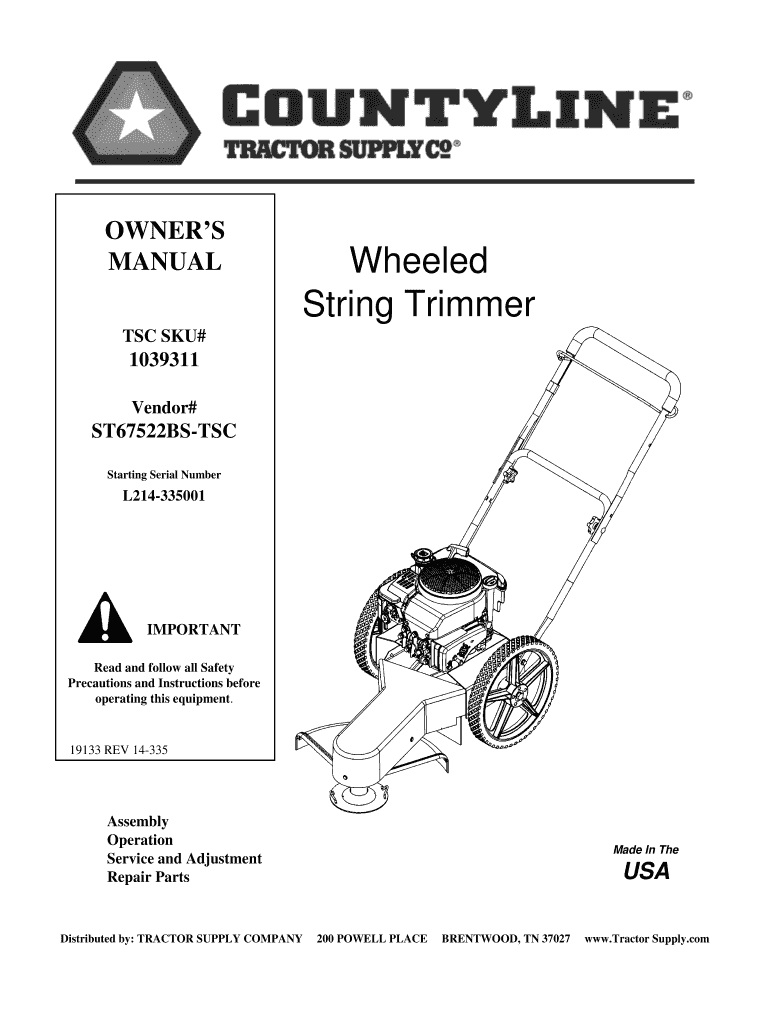 Get the free MANUAL Wheeled String Trimmer - swisherinc.com