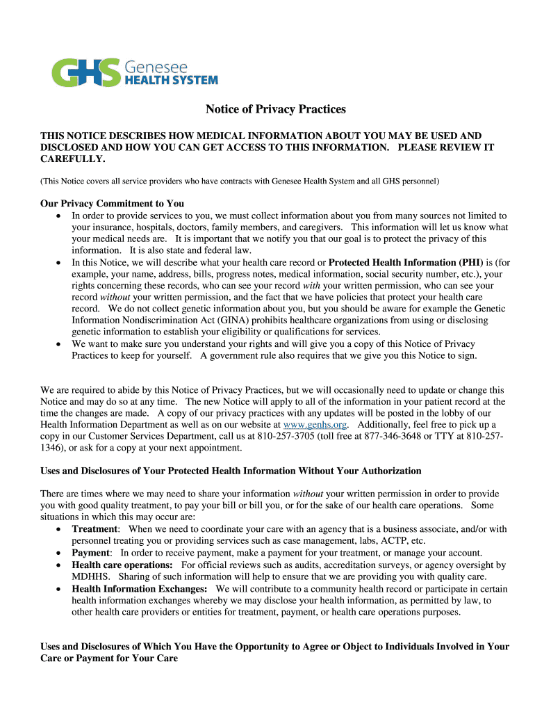 Start by reading the sample notice of privacy practices provided by your healthcare organization.