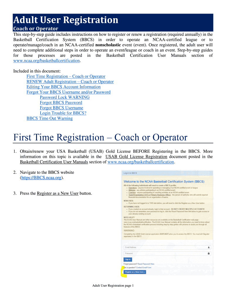 Get the free Adult User Registration First Time Registration ... - Ncaaorg