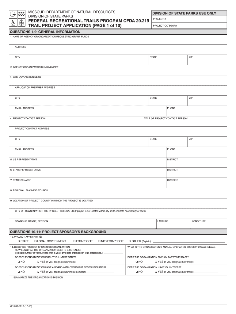 TRAIL PROJECT APPLICATION (PAGE 1 of 10)PROJECT #