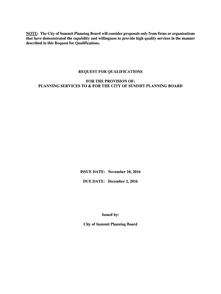 NOTE: The City of Summit Planning Board will consider proposals only from firms or organizations that have demonstrated the capability and willingness to provide high quality services in the manner