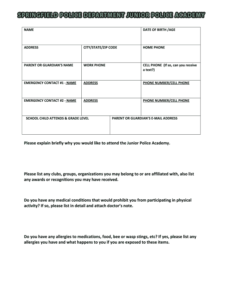 Fill out your form junior police academy online with pdfFiller!