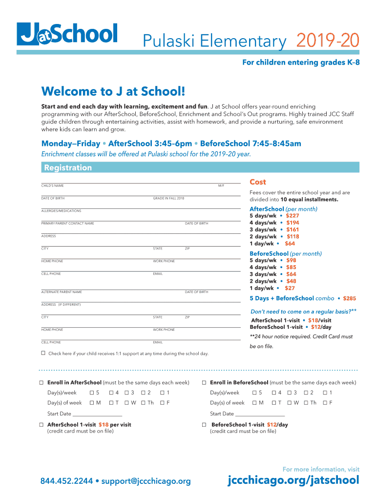 Pulaski Elementary 201920 For children entering grades K8Welcome to J at School! Start and end each day with learning, excitement and fun. J at School offers year round enriching programming with