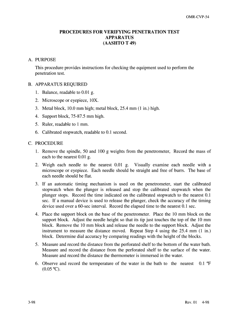OMRCVP54PROCEDURES FOR VERIFYING PENETRATION TEST