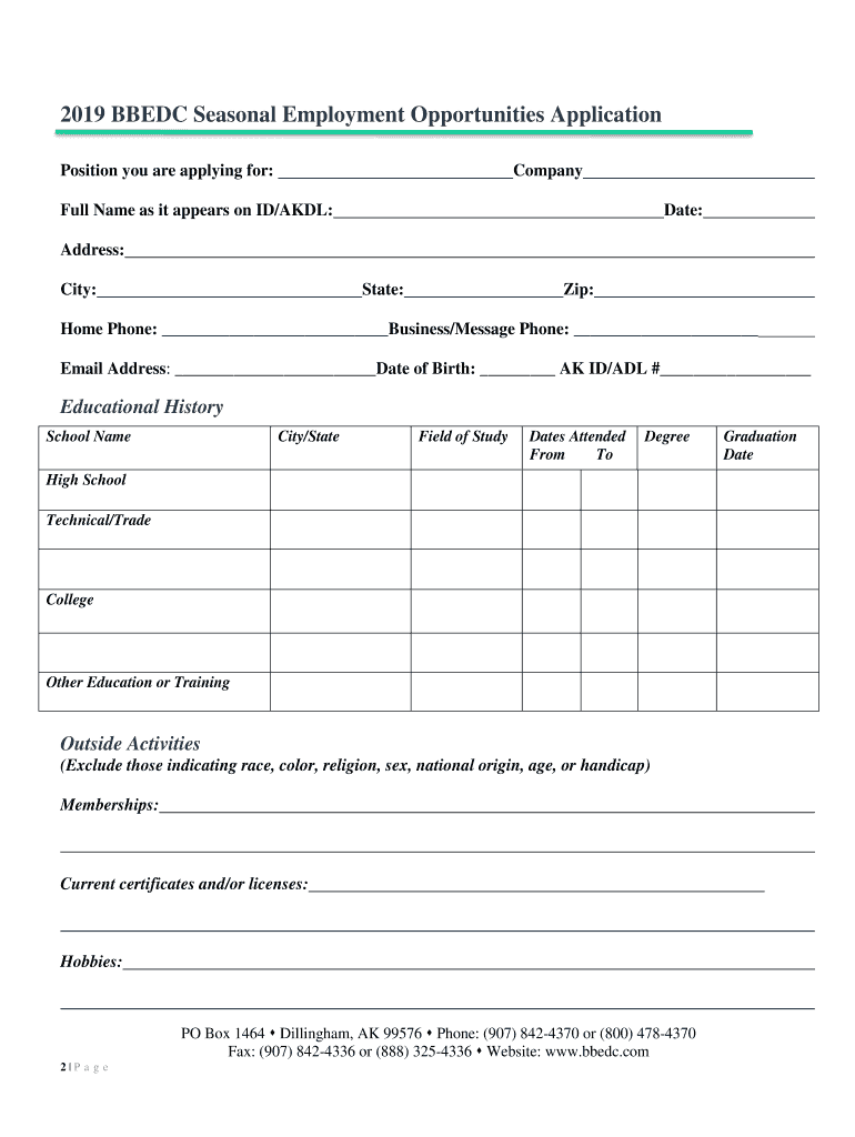 2019 BB EDC Seasonal Employment Opportunities Program APPLICATION CHECKLIST: (please check off) BB EDC accepts Seasonal Employment Opportunities Program applications from CD residents who meet all