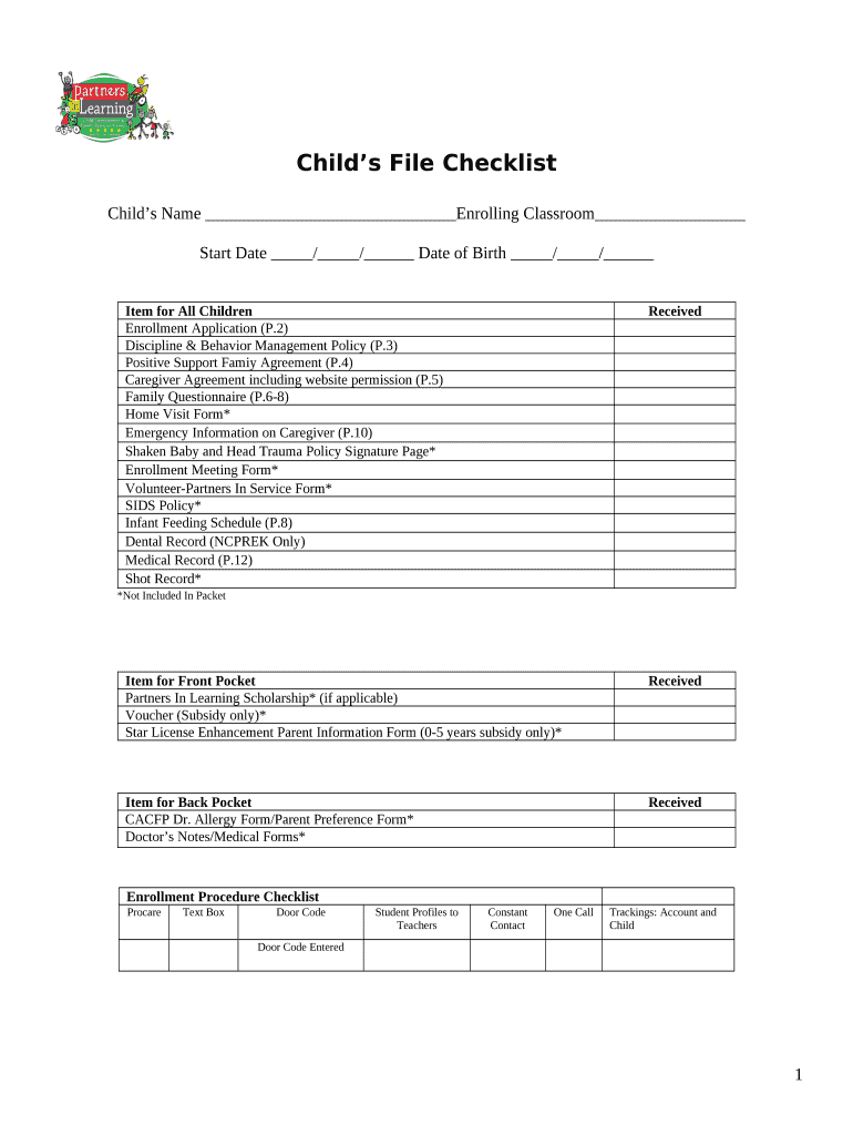 Date of Birth: Age: Classroom: Start Date: Initial Enrollment word template: frequently asked questions