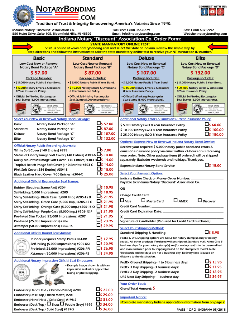 NOTARYBONDING .COM Tradition of Trust & Integrity Empowering Americas Notaries Since 1940. Indiana Notary Discount Association Co. 550 Let Drive, Suite 105, Bloomfield Hills, MI 48302Toll Free: 18003668279