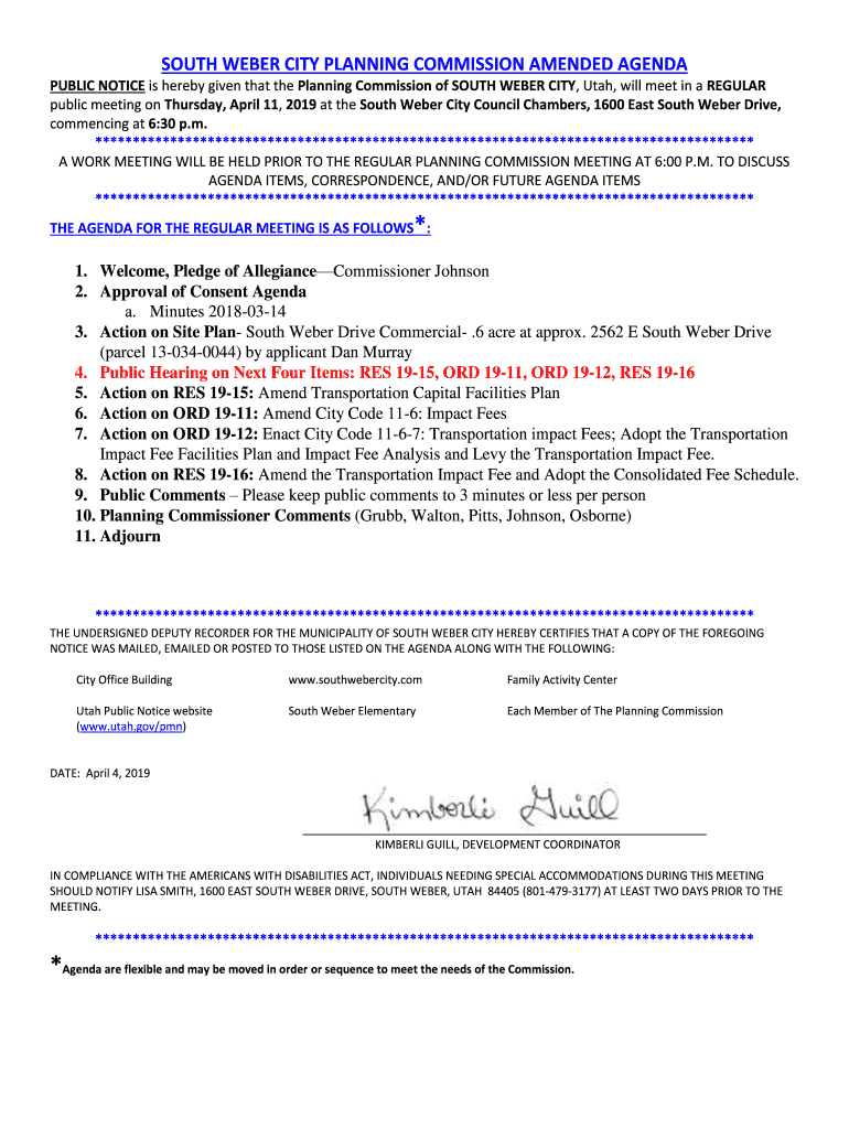 SOUTH WEBER CITY PLANNING COMMISSION AMENDED AGENDA