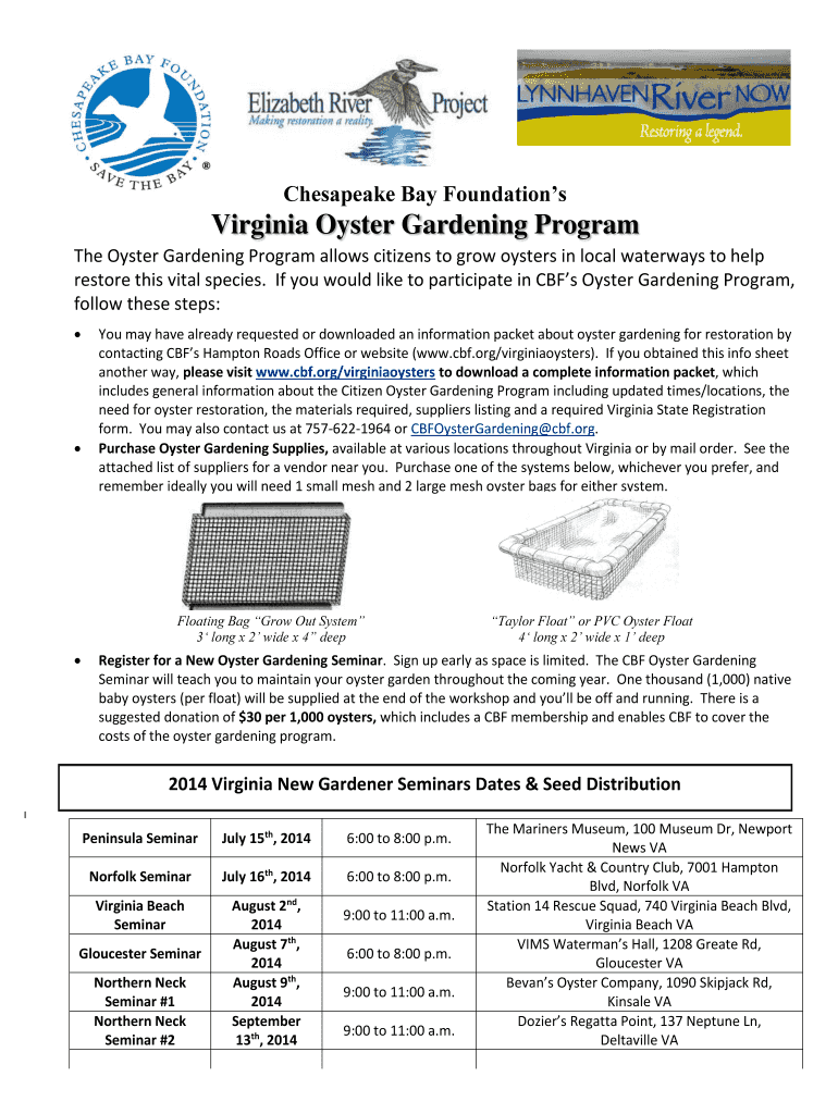 Chesapeake Bay Foundations Virginia Oyster Gardening Program