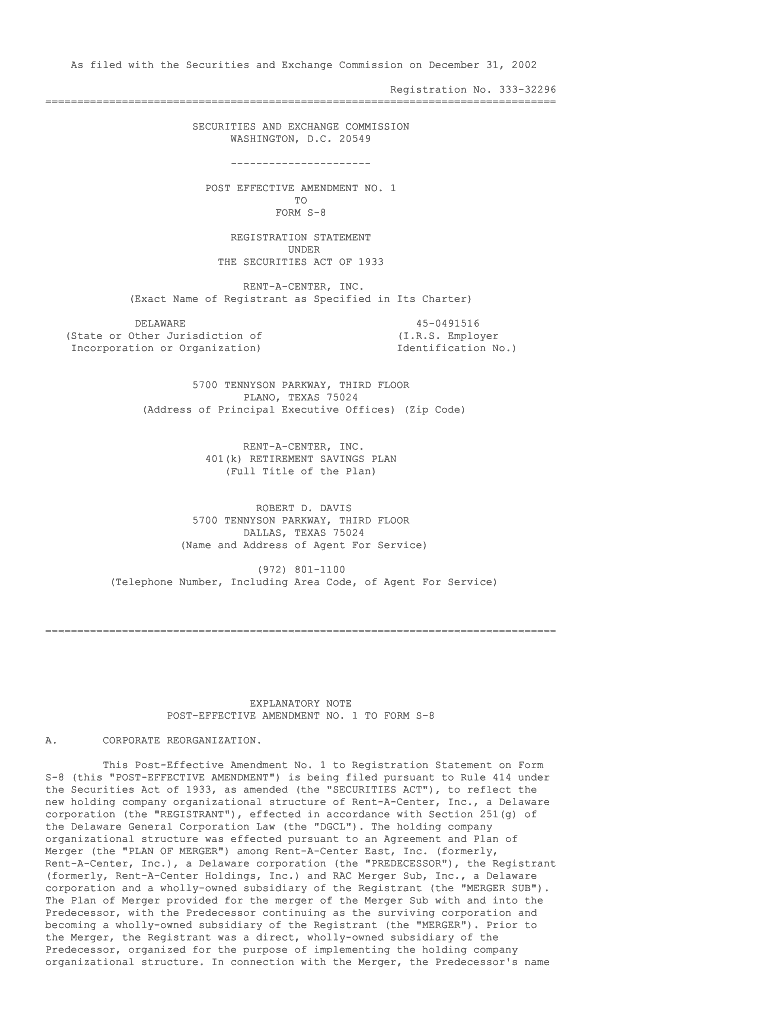 As filed with the Securities and Exchange Commission on December 31, 2002, Registration No. 33332296 SECURITIES AND EXCHANGE COMMISSION WASHINGTON, D.C. 20549 POST EFFECTIVE AMENDMENT NO. 1 TO FORM