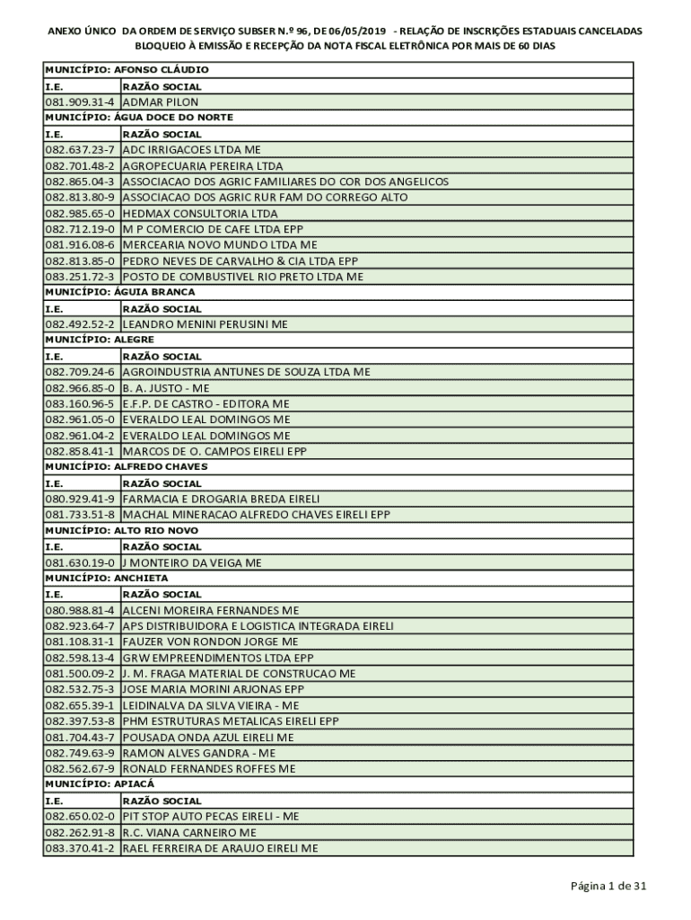 Obtenha o gratuito Anexo Único Da Ordem De ServiÇo Subser N.º 96, De 06/05/2019 - ftp sefaz es gov
