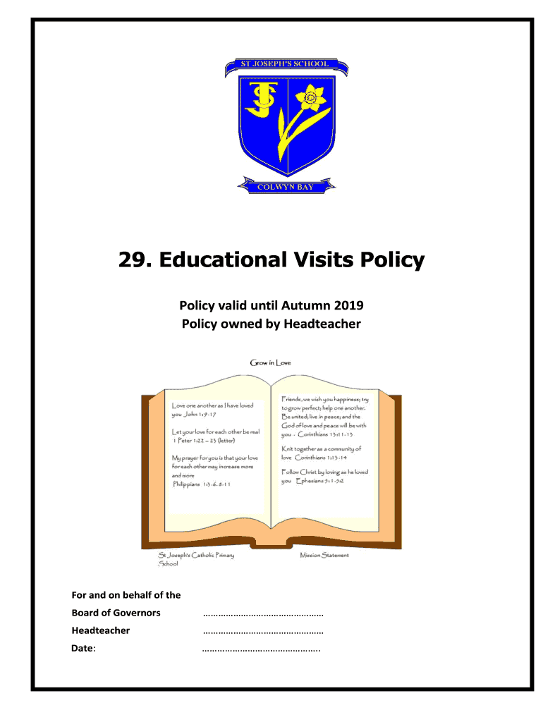 29. Educational Visits Policy valid until Autumn 2019