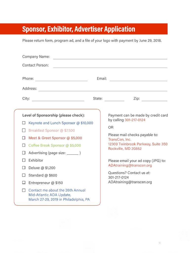 Americans with Disabilities Act mid-Atlantic Update 2018 Sponsorship Prospectus ADA training transcend.org www.ADAinfo.org 301217012418 Transcend, Inc. and the mid-Atlantic ADA Center invite companies,