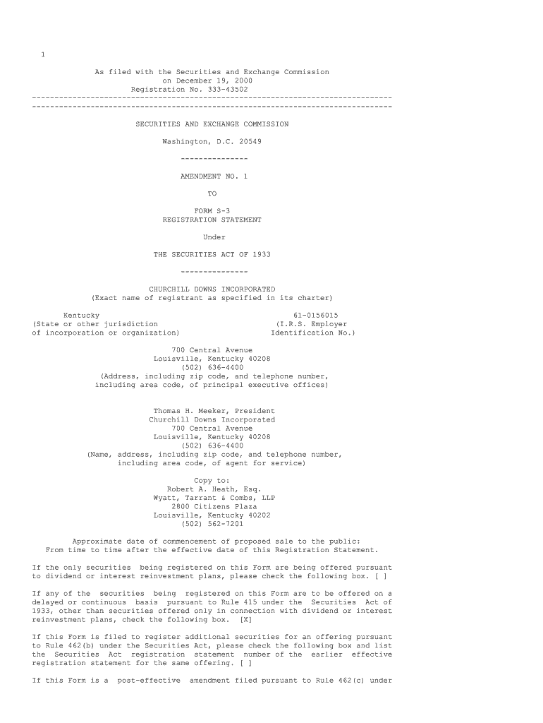 Get the free --------------CHURCHILL DOWNS INCORPORATED