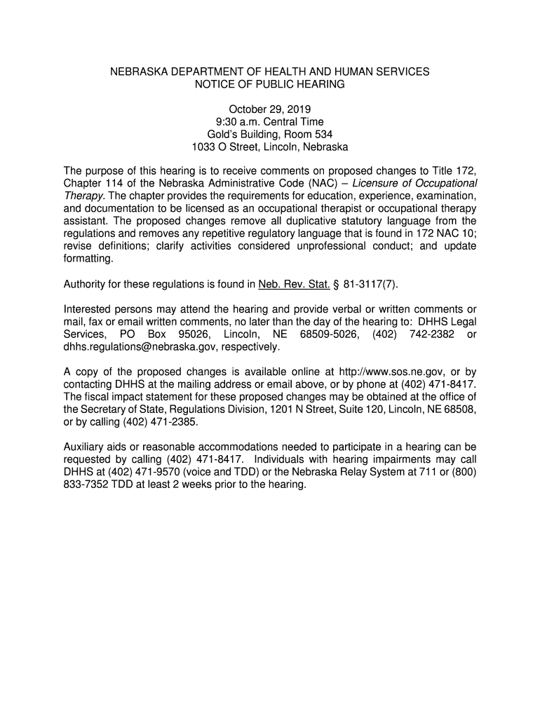 Get the free NOTICE OF PUBLIC HEARING NEBRASKA DEPARTMENT OF HEALTH AND ...