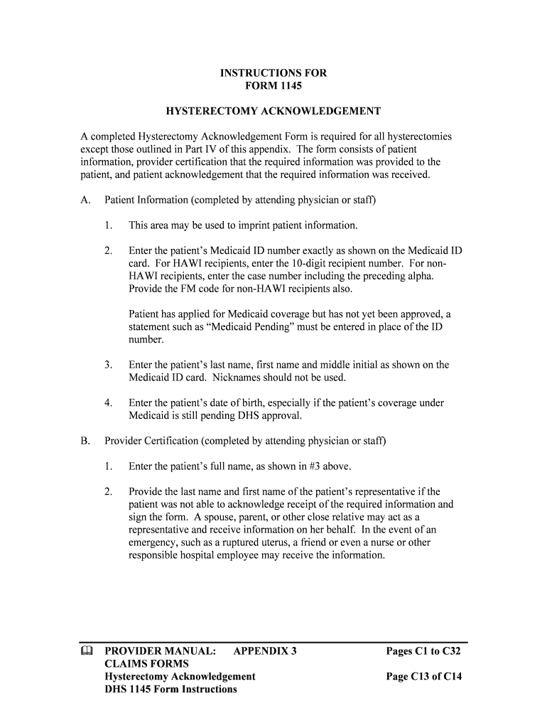 Get the free APPENDIX 3 Pages C1 to C32 CLAIMS FORMS Hysterectomy ...