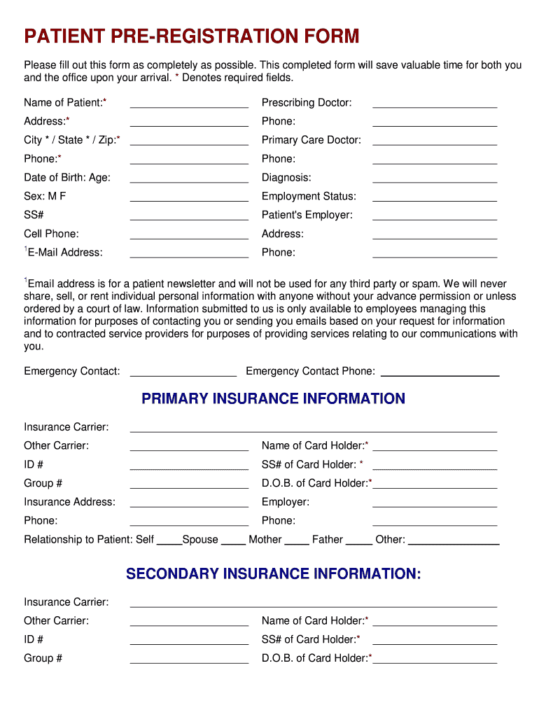 PATIENT PREREGISTRATION FORM Please fill out this form as completely as possible. This completed form will save valuable time for both you and the office upon your arrival. * Denotes required fields.