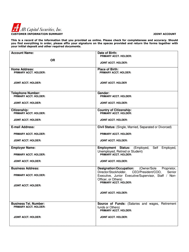 Through the joint account opening form, users can expedite the registration process with ABCSI. The form is designed to streamline the documentation needed, ultimately making the experience smoother for users seeking a collaborative financial setup.