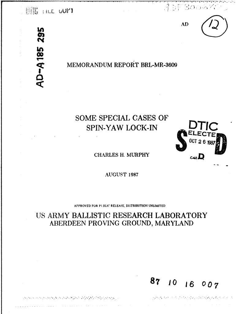 ADC4 00 Memorandum REPORT BRLMR3609SOME SPECIAL CASES OFDTICSPINYAW LOCKINELECTE OCR 2 619871 CT26S.CHARLES H. MURPHYAUGUST 1987APPROVED FOR PUBLIC RELEASE, DISTRIBUTION UNLIMITED US ARMY BALLISTIC