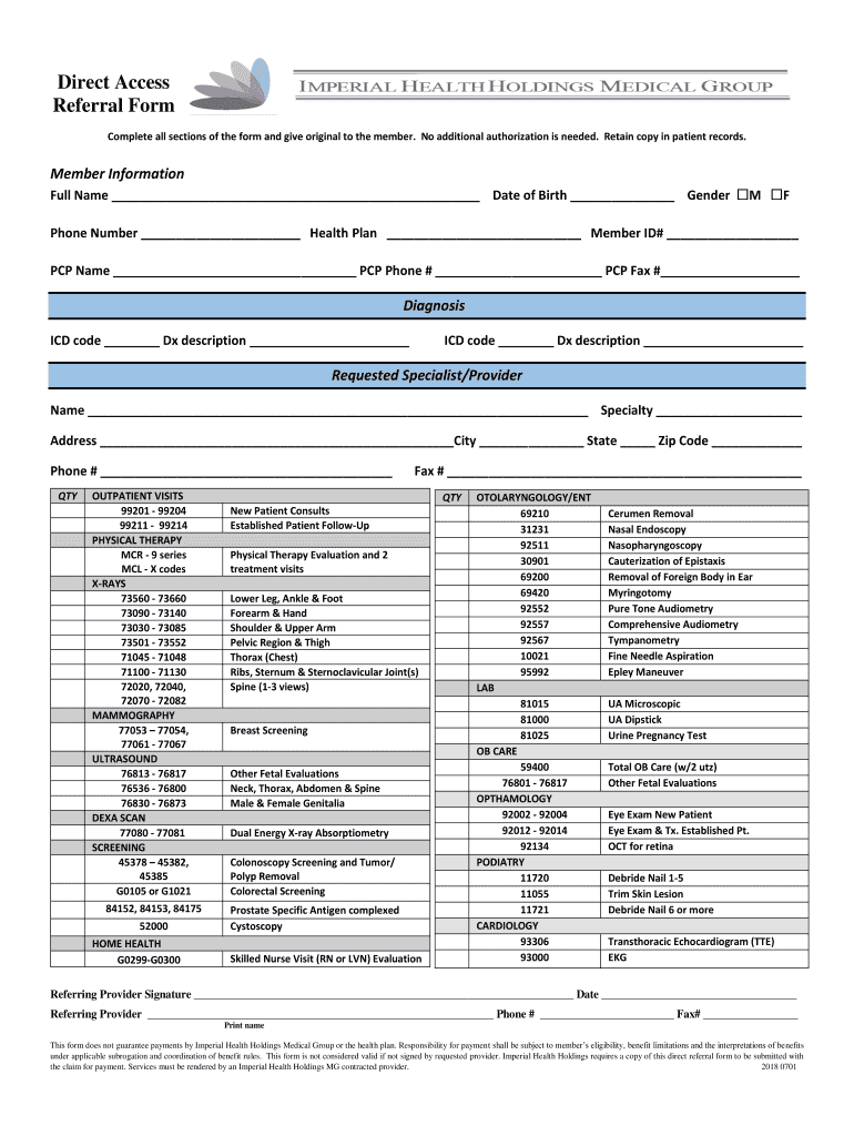 Individuals who wish to see a specialist without a referral from a primary care physician are required to file a direct access referral form.