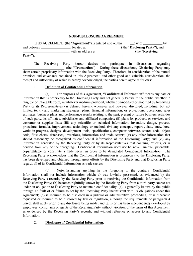 NONDISCLOSURE AGREEMENT THIS AGREEMENT (the “Agreement) is entered into on this day of by and between, located at (the Disclosing Party), and with an address at (the Receiving Party). The Receiving
