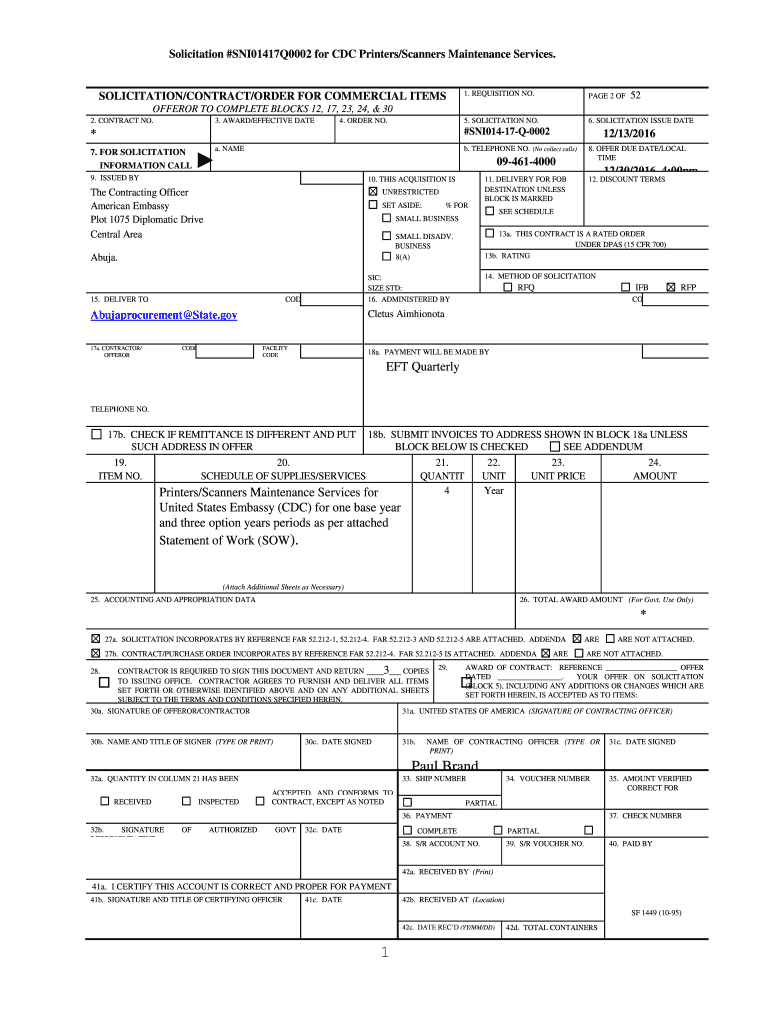 Solicitation #SNI01417Q0002 for CDC Printers/Scanners Maintenance Services.SOLICITATION/CONTRACT/ORDER FOR COMMERCIAL ITEMS1. REQUISITION NO.PAGE 2 OF5. SOLICITATION NO.6. SOLICITATION ISSUE DATE52OFFEROR