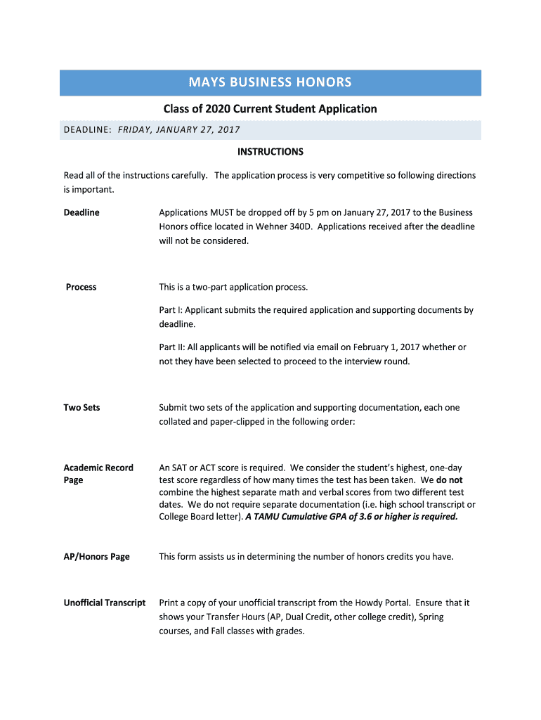 Get the free Class of 2020 Current Student Application - mays.tamu.edu - mays tamu