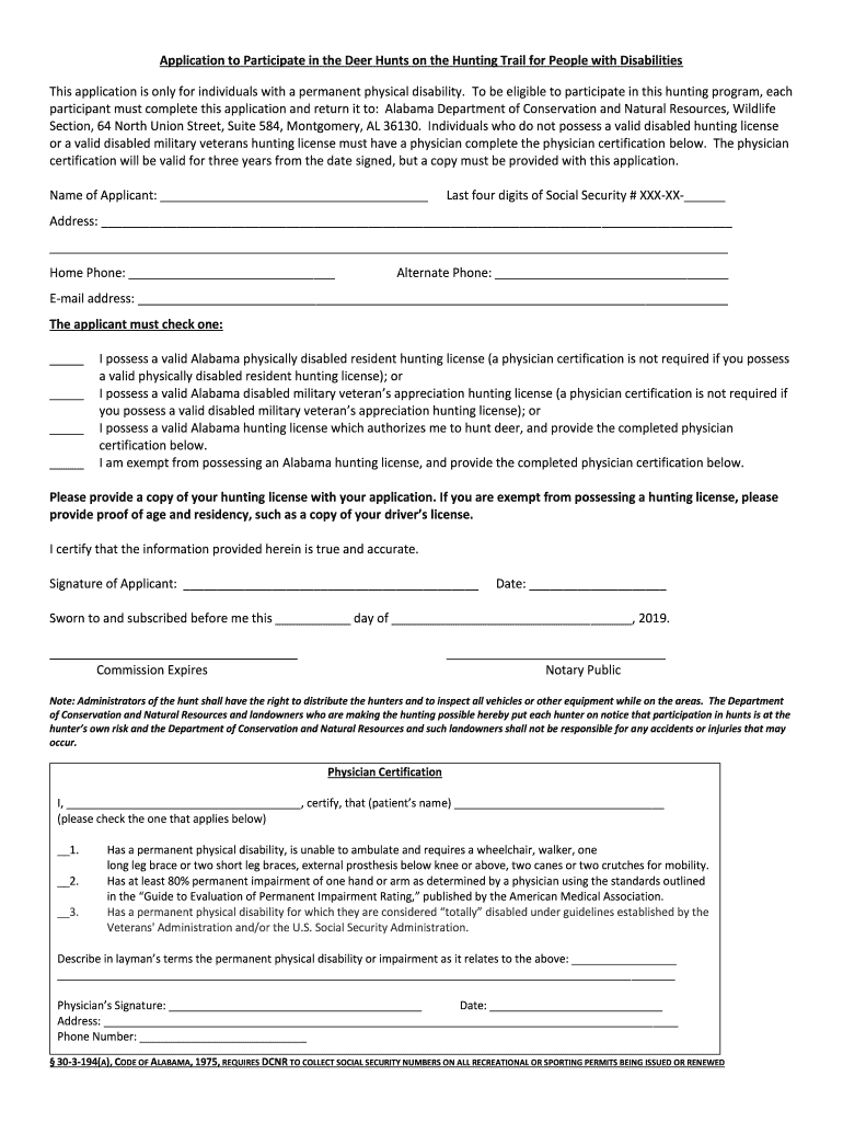 Application to Participate in the Deer Hunts on the Hunting Trail for People with Disabilities