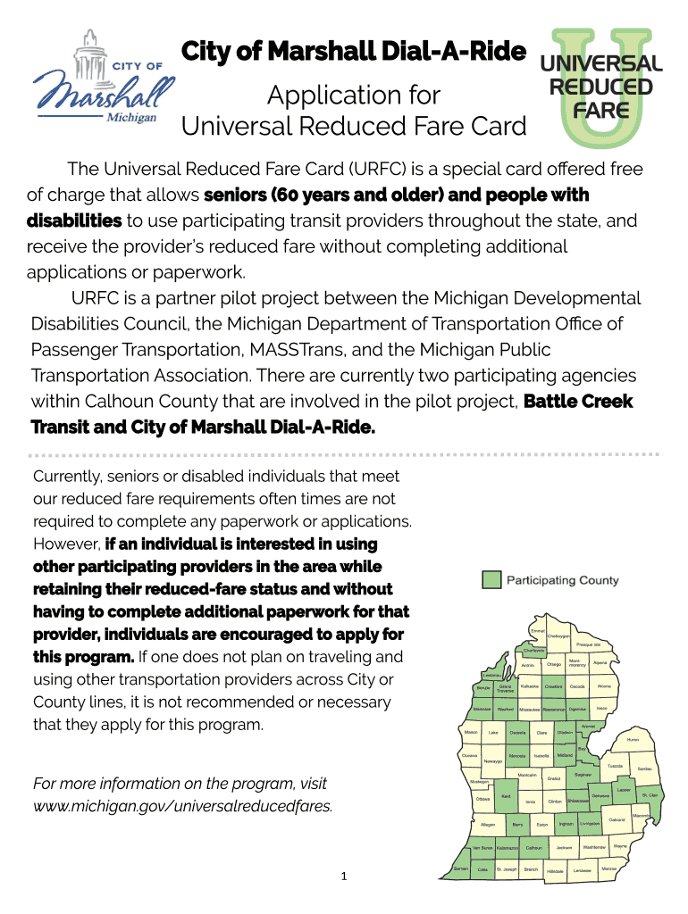 The Universal Reduced Fare Card (RFC) is a special card offered free