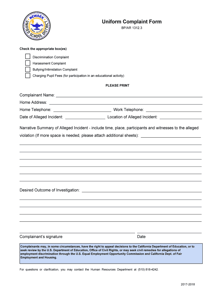BP/AR1312.3Newark Unified School District