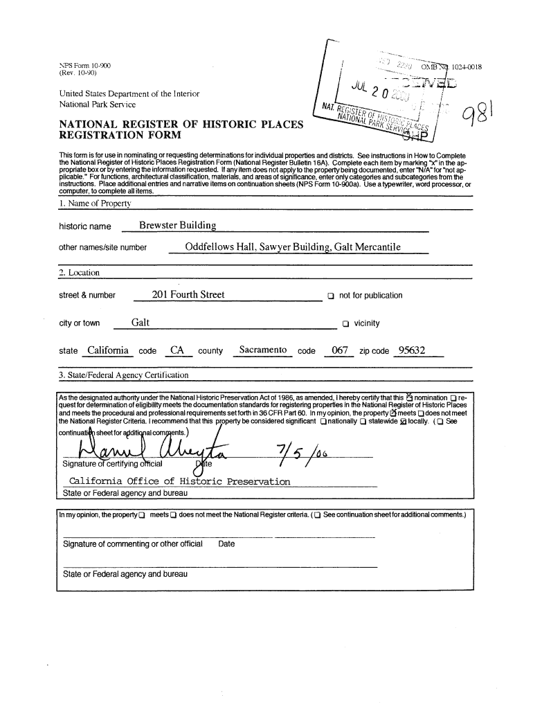 NTS Form 10900 (Rev. 1090)United States Department of the Interior National Park ServiceNATIONAL REGISTER OF HISTORIC PLACES REGISTRATION FORM This form is for use in nominating or requesting determinations