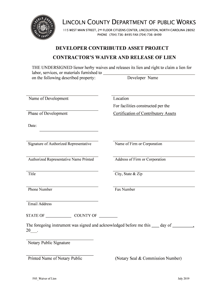 Get the free F05Waiver of Lien