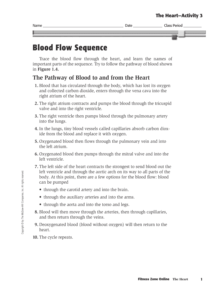 The Reactivity 3 Name Date Class Period Blood Flow Sequence Trace the blood flow through the heart, and learn the names of important parts of the sequence. Try to follow the pathway of blood shown