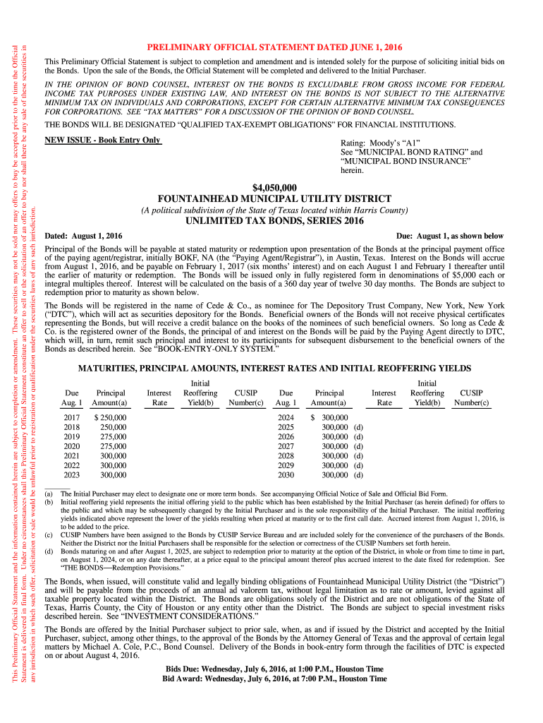 This Preliminary Official Statement and the information contained herein are subject to completion or amendment. These securities may not be sold nor may offers to buy be accepted prior to the time