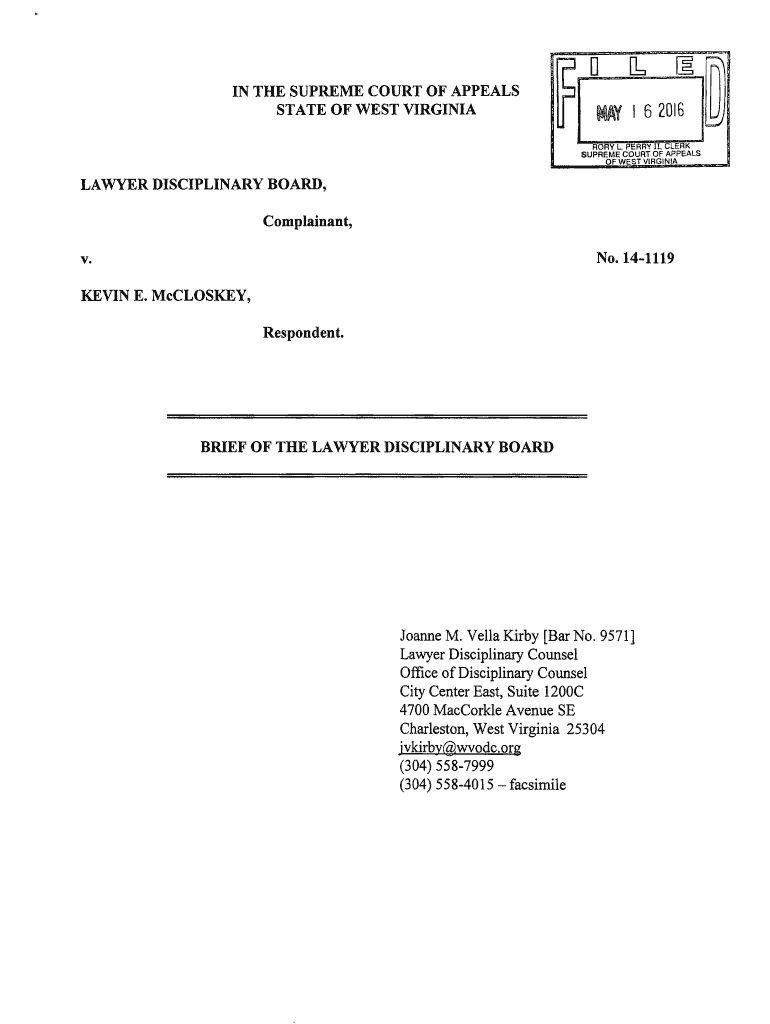 Get the free Brief of the Lawyer Disciplinary Board, Lawyer Disciplinary Board v. Kevin E. McClos...