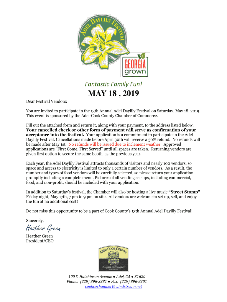 You are invited to participate in the 13th Annual Adel Day lily Festival on Saturday, May 18, 2019.