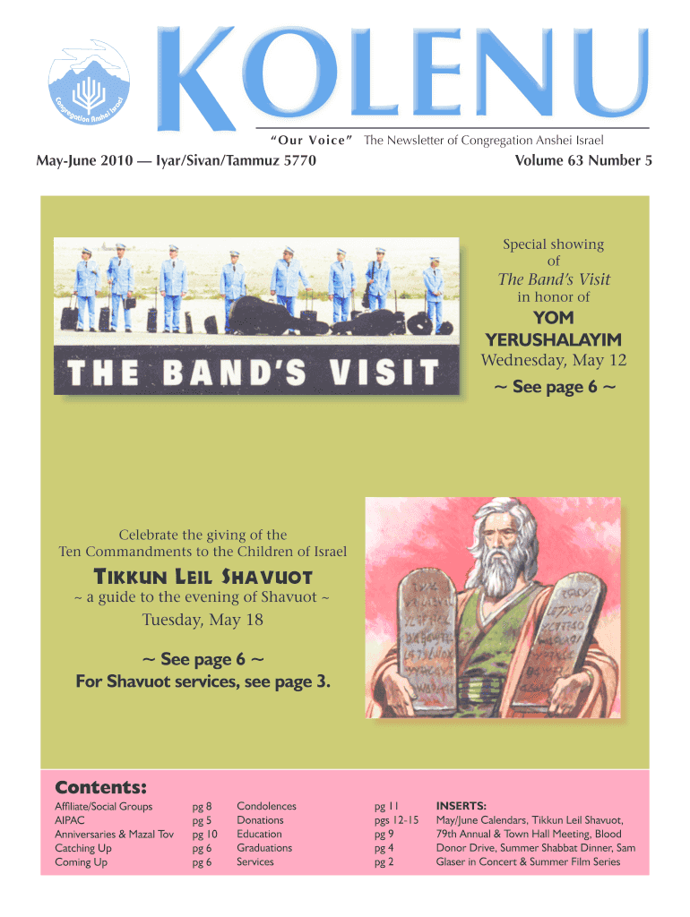 O u r V o i c e The Newsletter of Congregation Aisha IsraelMayJune 2010 Iyar/Sivan/Tammuz 5770Volume 63 Number 5Special showing the Bands Visit in honor Ofcom YERUSHALAYIMWednesday, May 12 See page