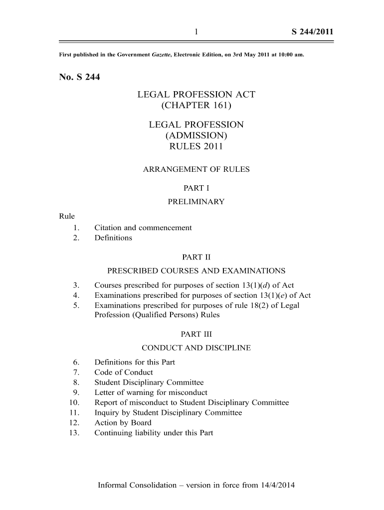 1S 244/2011First published in the Government Gazette, Electronic Edition, on 3rd May 2011 at 10:00 am. No. S 244