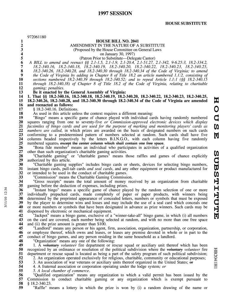 1997 SESSION HOUSE SUBSTITUTESUBSTITUTE HB2041H1HOUSE BILL NO. 2041 AMENDMENT IN THE NATURE OF A SUBSTITUTE (Proposed by the House Committee on General Laws on January 30, 1997) (Patron Prior to SubstituteDelegate