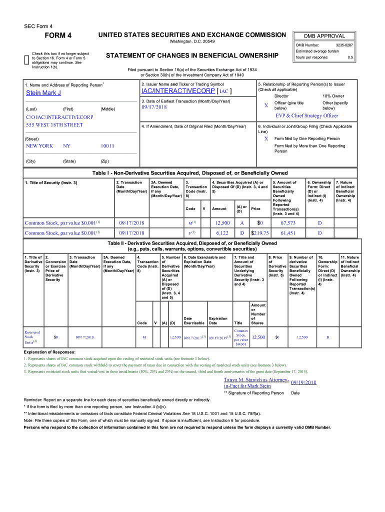 Information such as the number of shares owned, purchase price, date of acquisition, and any changes in ownership must be reported on represents shares of iac.