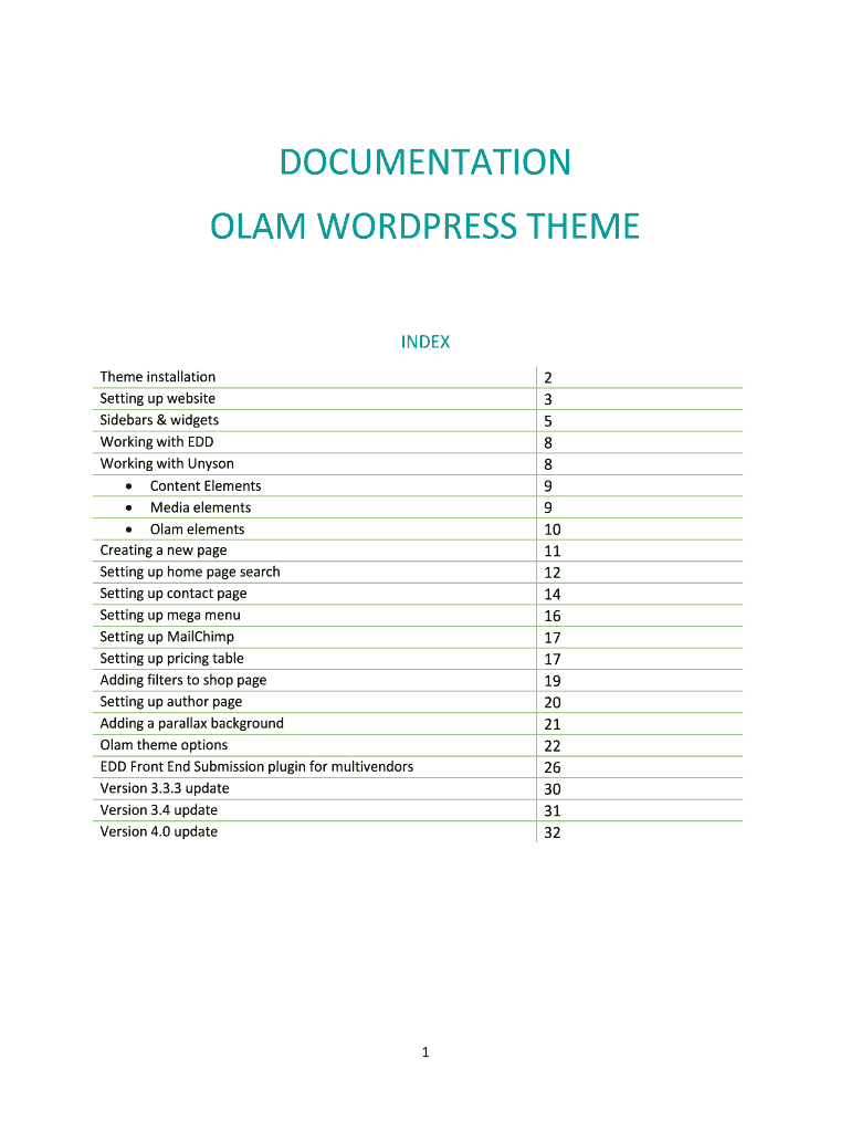 DOCUMENTATION SLAM WordPress THEME INDEX Theme installation Setting up website Sidebars & widgets Working with EDD Working with Unison Content Elements Media elements Slam elements Creating a new
