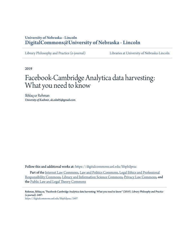 University of Nebraska LincolnDigitalCommons University of Nebraska Lincoln Library Philosophy and Practice (journal)Libraries at University of NebraskaLincoln2019FacebookCambridge Analytica data