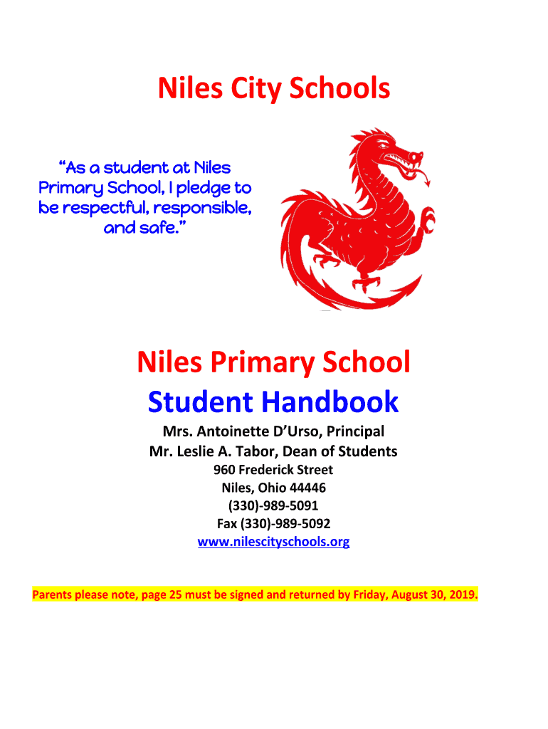 Get the free Niles City Schools Niles Primary School Student Handbook