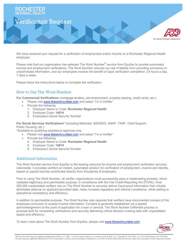 Get the free Verification Request - Rochester Regional Health