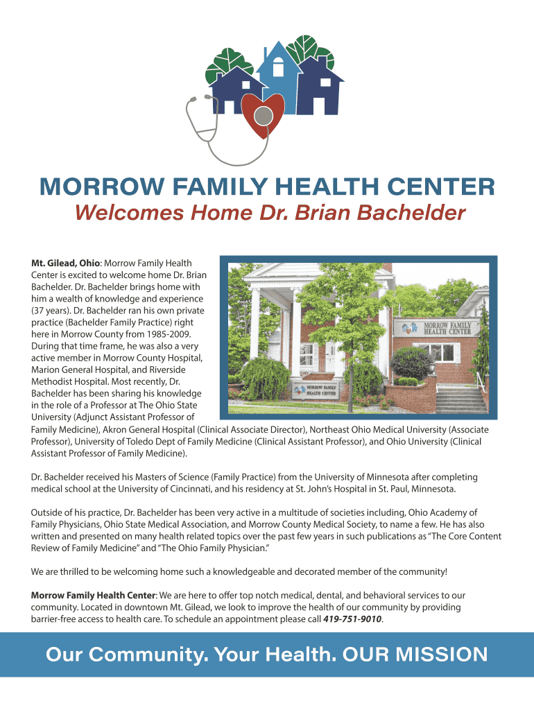 Morrow Family Health Center is excited to welcome home Dr. Brian Bach elder. Dr. Bach elder brings home with him a wealth of knowledge and experience (37 years). Dr. Bach elder ran his own private
